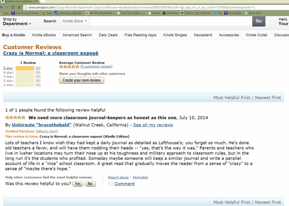 The reason for this Blog that I launched in January of 2010 was to support this memoir. Crazy is Normal, a classroom exposeis based on a daily classroom journal that I kept as a teacher in 1994-95. I have friends who are still teaching, and I know that the work climate for public school teachers is worse today than it was back then thanks to two presidents: George W. Bush and even worse, Obama, who, like a fool, I voted for twice, because I had no idea of his agenda to destroy the public schools and replace them with corporate, for profit schools that would not be answerable to the public while the public supported them with the taxes they pay.